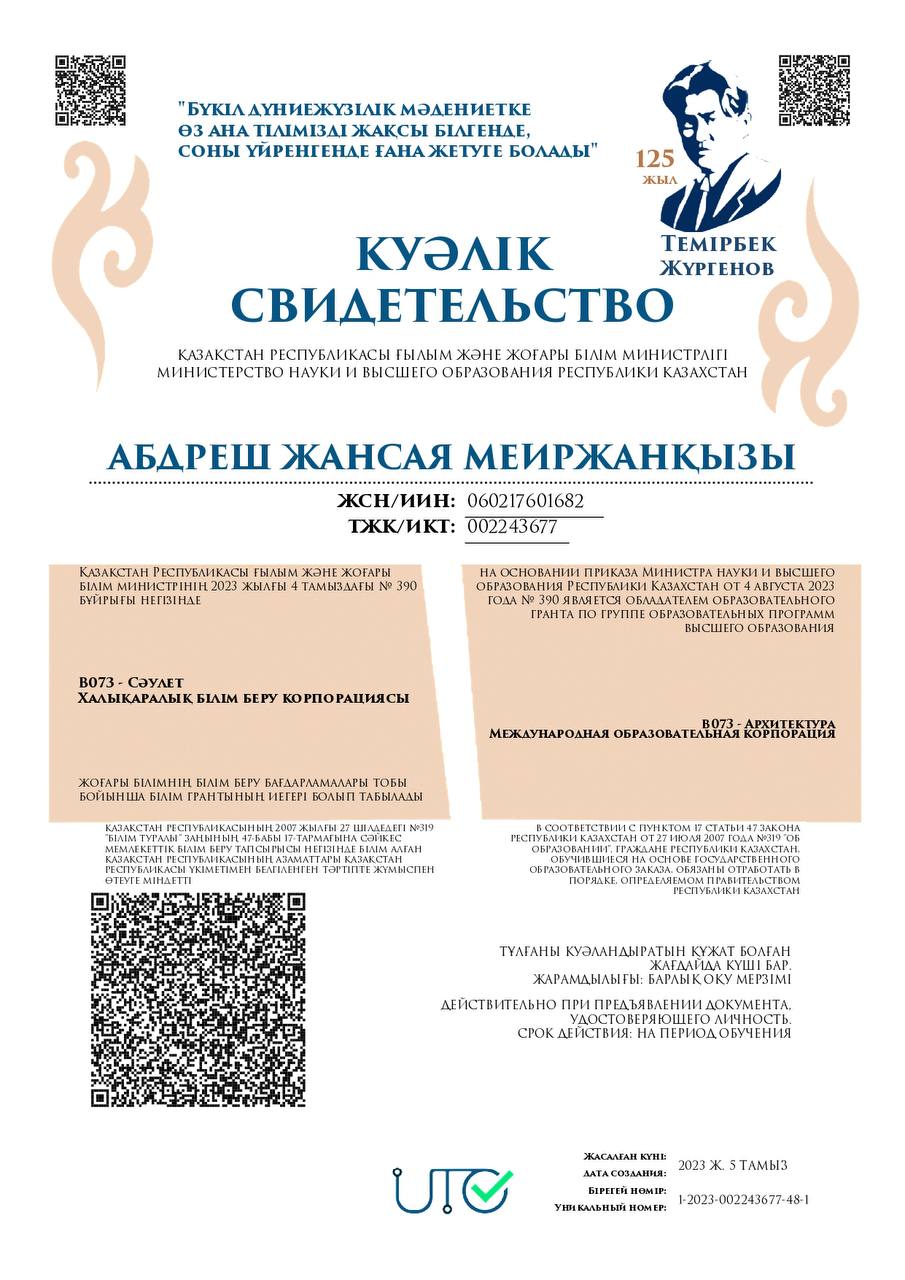 архитектура және дизайн мамандығында оқитын 1-2 курс студенттеріне